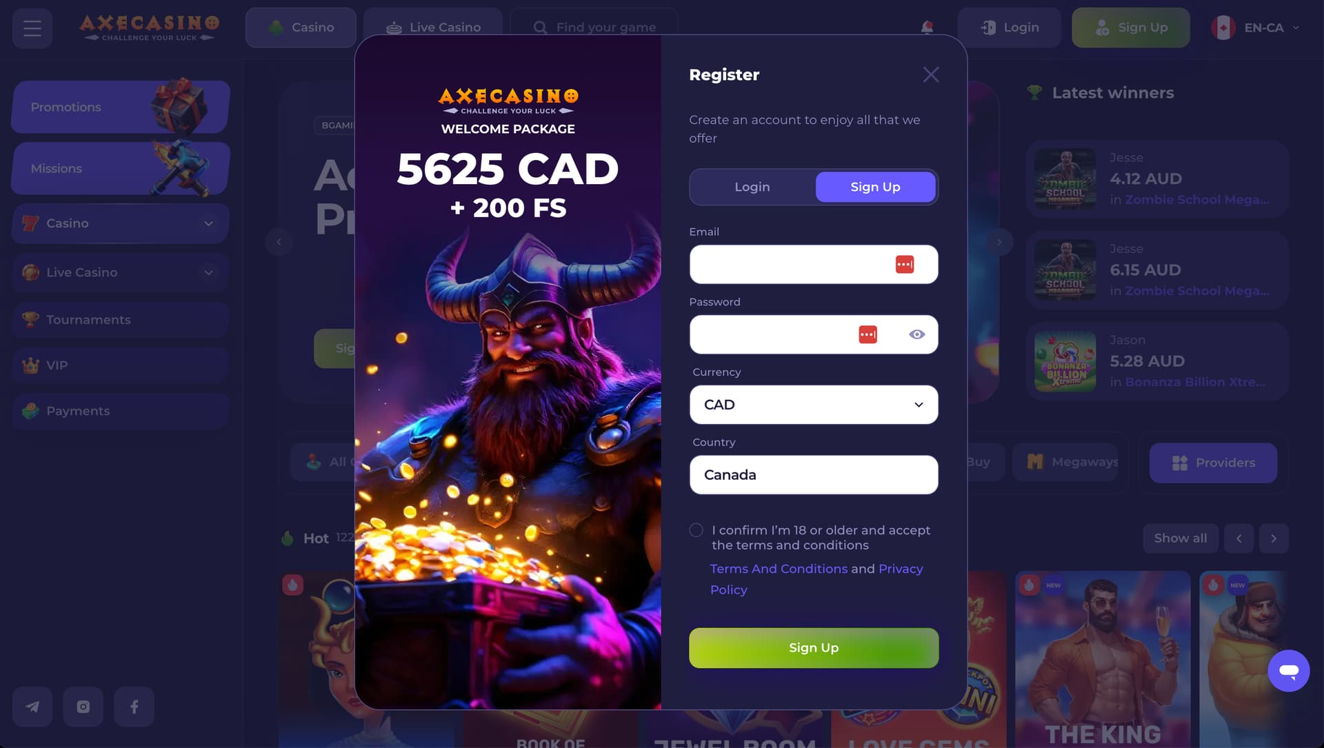 We have recently tested the new version of Axe Casino which looks much better and very easy to use they updated the design of the website and our team opinion this scores better rating then before since everything looks clean, below we have added some screenshot from the new design, wish you best of luck to try and play at Axe Casino