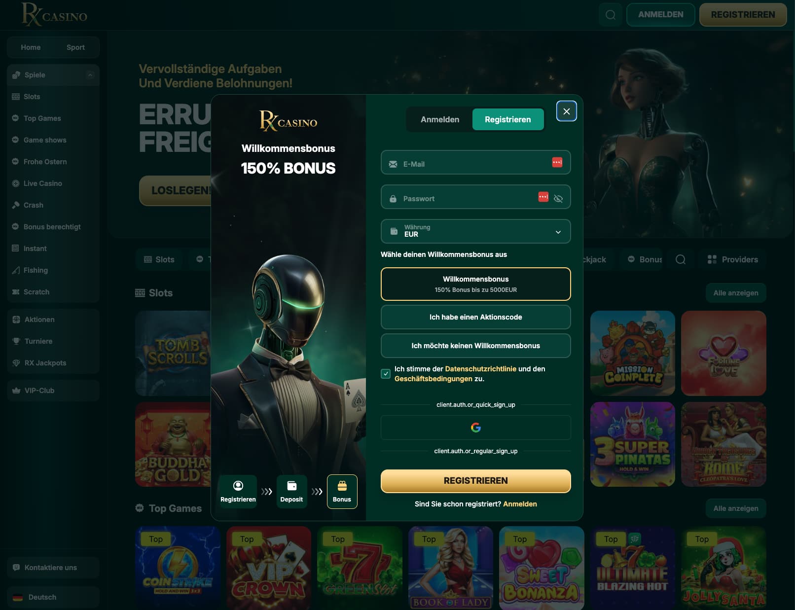 - RX Casino promo code